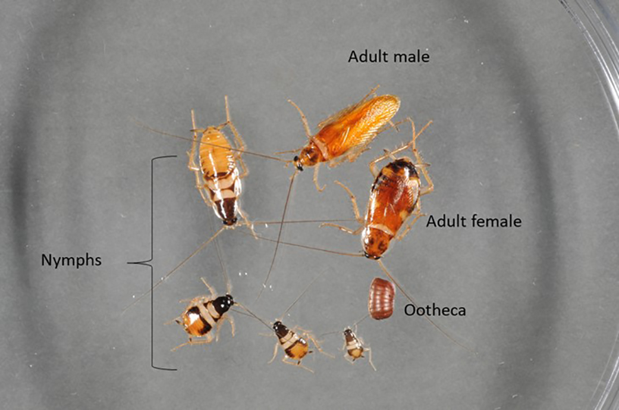Here’s how a Brown-banded cockroach looks like (image courtesy of the New Jersey Agricultural Experiment Station).