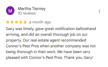 Martha’s review reflects why Connor’s Pest Pros continues to earn trust in Fairfax Station.