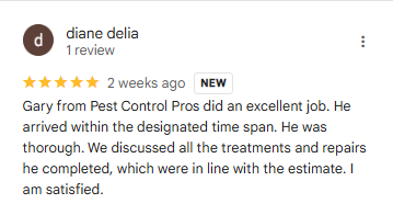 ★★★★★ “Quick to answer my call and available same-day… I recommend them to anyone looking for pest control in NOVA.” – Jacquelyn L.
